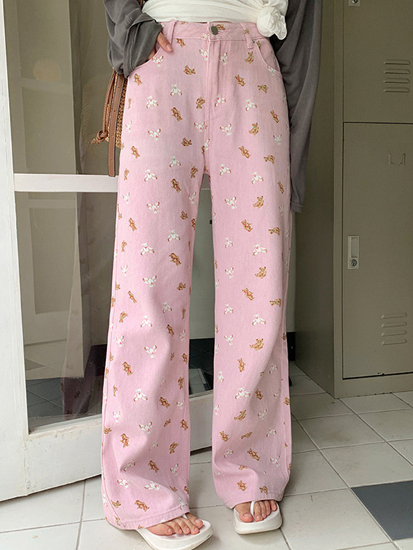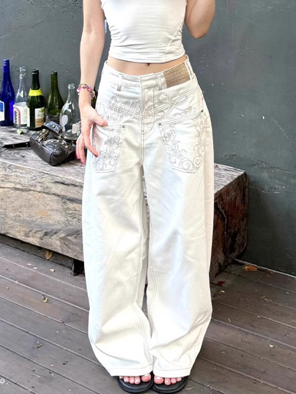 Herren-Jeans mit Kokosnussbaum-Stickerei und Kordelzug, lockere Passform