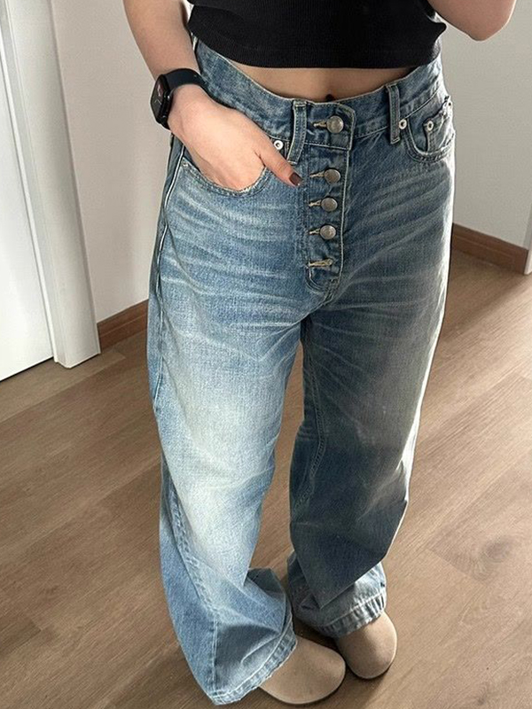 American Retro – Verwaschene Boyfriendjeans mit Katzenschnurrbart-Knopf