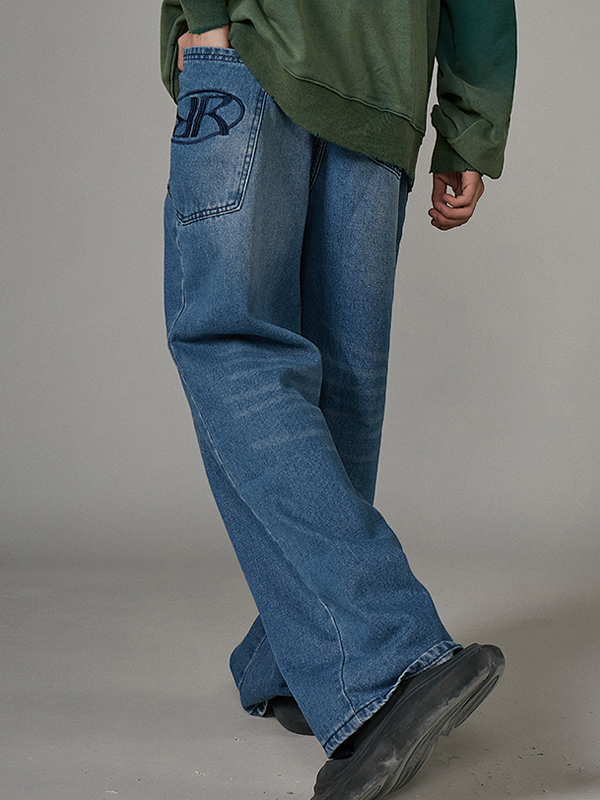 Herren All-Match Schlankheits-Jeans mit weitem Bein und leicht ausgestellter Waschung