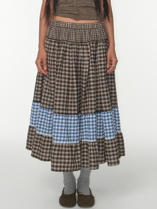 Maxirock im Retro-Patchwork-Farbenkonflikt