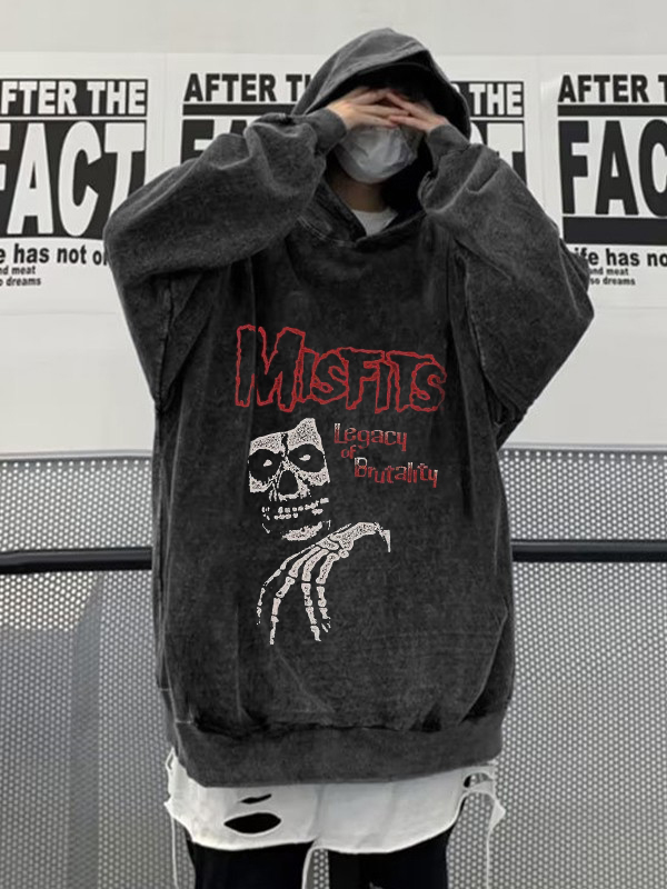 Übergroßer Kapuzenpullover mit Totenkopf-Print für Herren