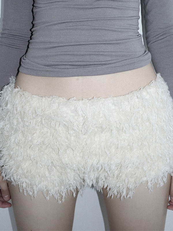 Einfarbige Shorts mit Pelz