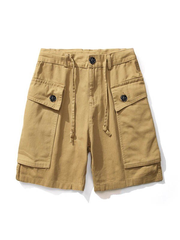 Khakifarbene Cargo-Shorts mit aufgesetzten Taschen für Herren