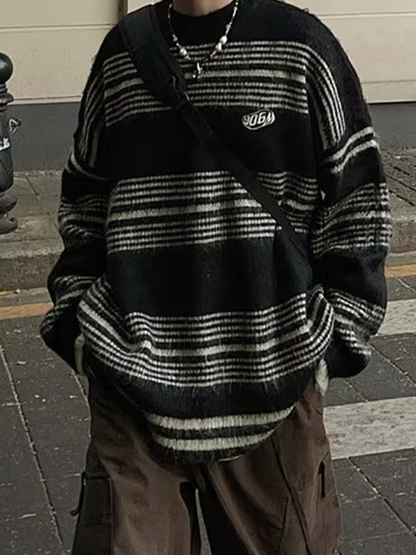 Lockerer Herrenpullover mit Fuzzy-Streifen-Print