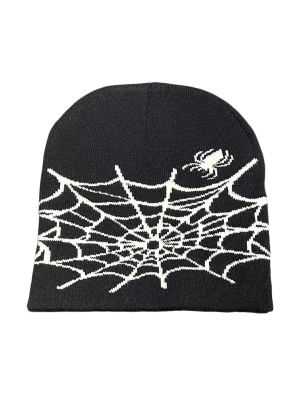 Warme Beanie-Mütze aus Spinnennetz-Jacquard