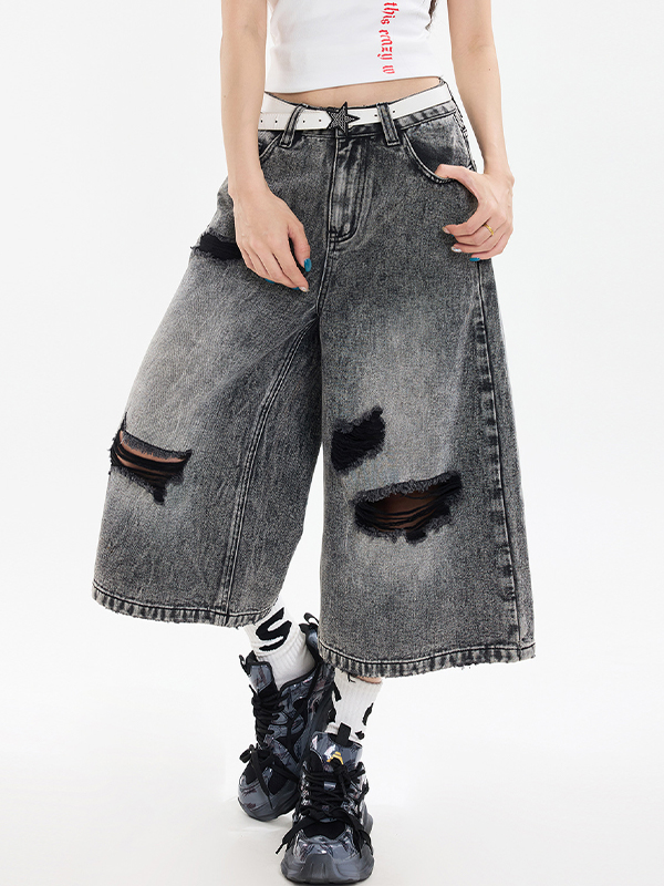Couple Hundred – Passende Jeansshorts mit weitem Bein