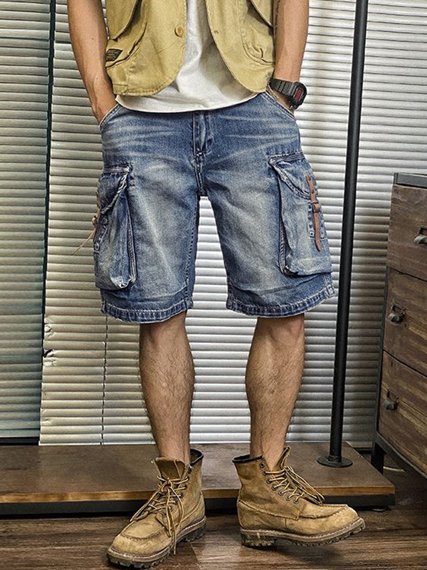 Lockere Retro-Jeansshorts im Used-Look für Herren