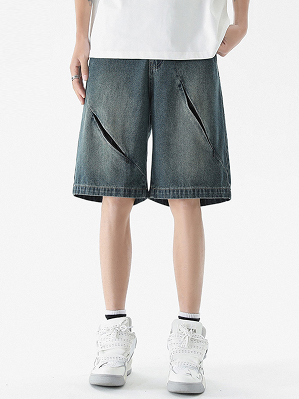Lockere, gerade Jeansshorts für Herren mit Reißverschluss