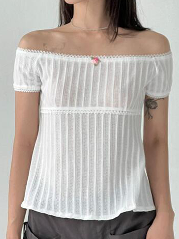Einfarbiger Strick mit einer Schulter und kurzen Ärmeln