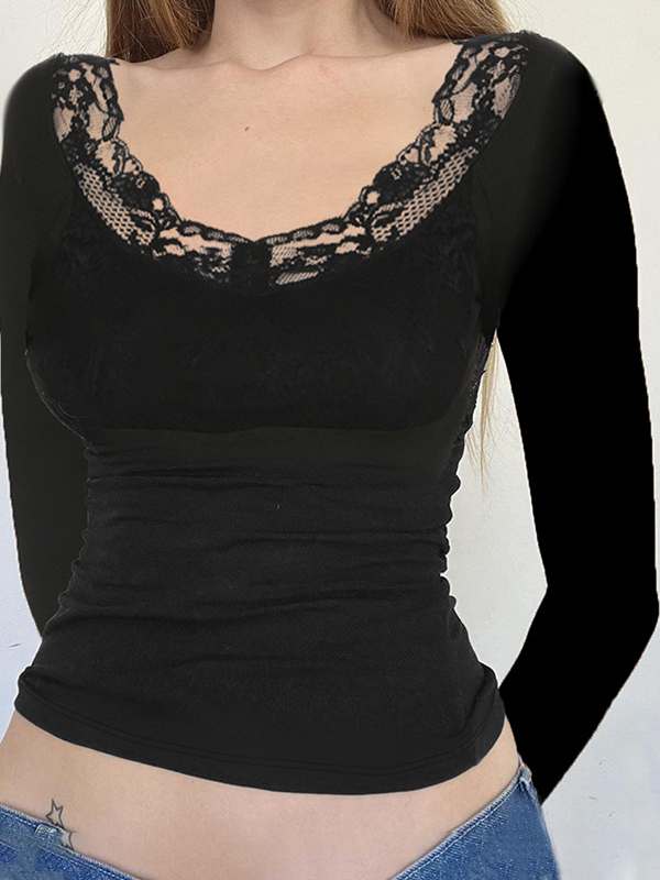 Einfarbiges Langarm-T-Shirt