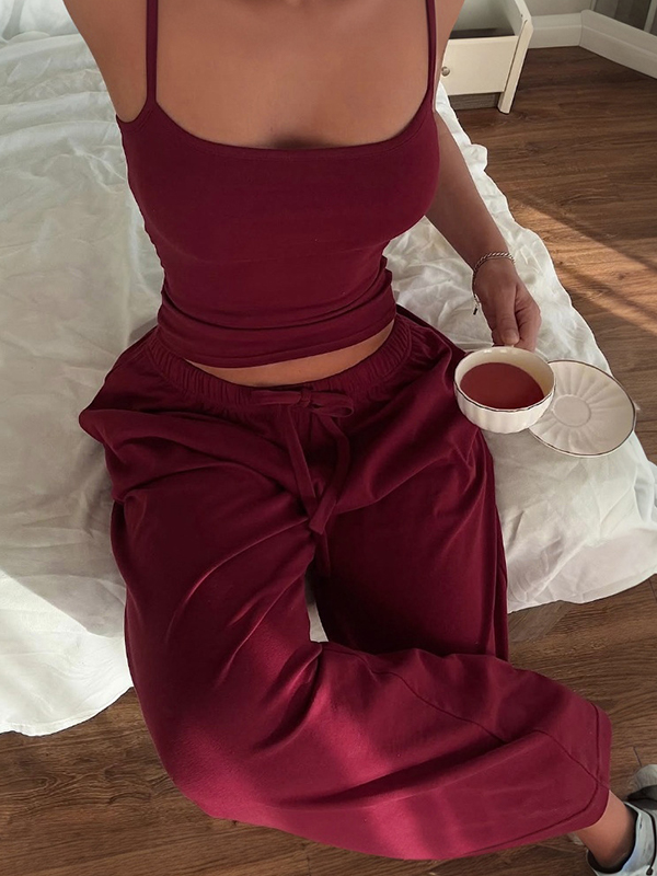 Einfarbiger ärmelloser rückenfreier Zweiteiler