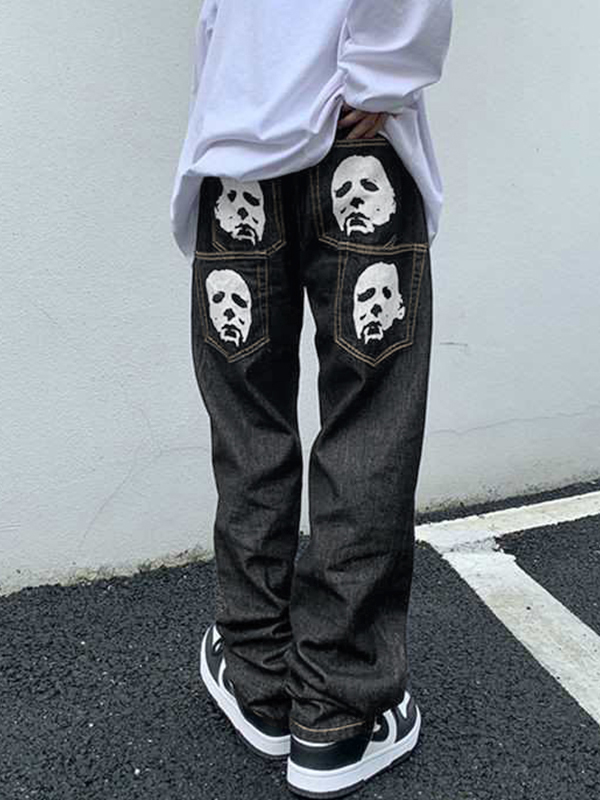 Lockere Jeans für Herren mit Totenkopf-Buchstaben-Print