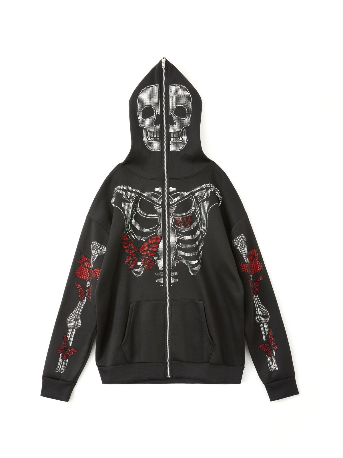 Herren-Hoodie mit Strass-Schmetterlingsschädel und Reißverschluss