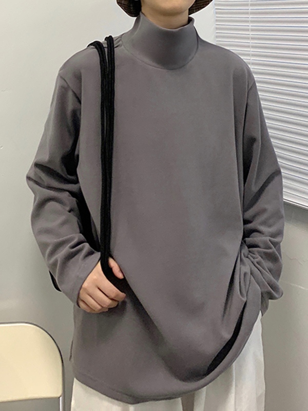 Solides Herren-T-Shirt mit Stehkragen und langen Ärmeln