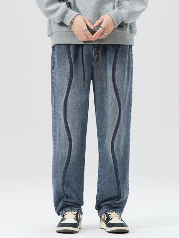 Lockere Vintage-Jeans für Herren mit Ziernähten und Kordelzug