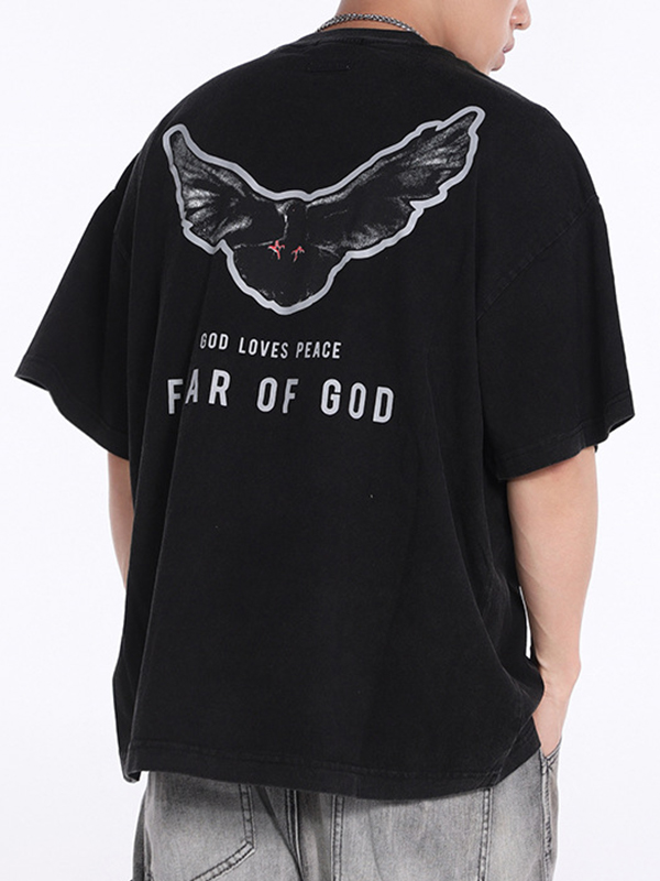 Übergroßes, kurzärmliges T-Shirt mit Flügel-Print für Herren