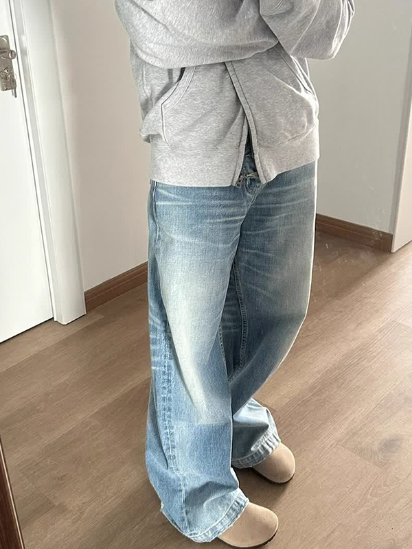 American Retro – Verwaschene Boyfriendjeans mit Katzenschnurrbart-Knopf