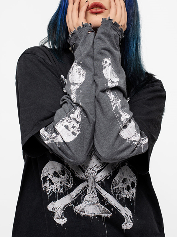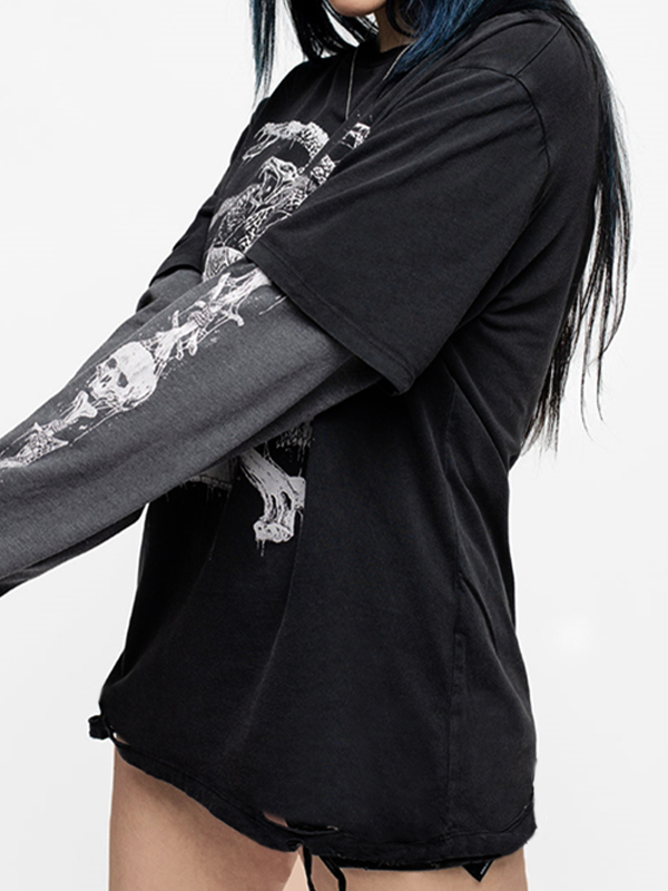 Einzigartiges Design : Dieses langärmlige T-Shirt verfügt über ein Distressed-Design mit Schlangen- und Totenkopf-Prints, das ihm eine coole Street-Atmosphäre verleiht.