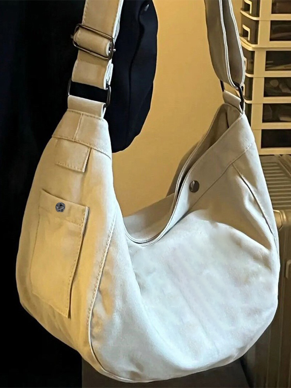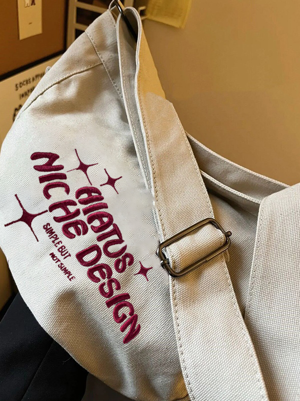 Bestickte große Umhängetasche aus Segeltuch
