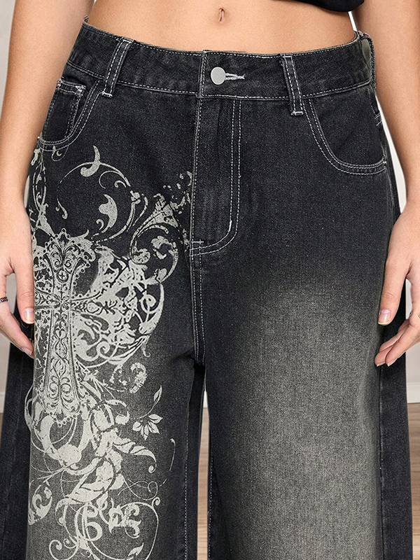 Boyfriendjeans mit Retro-Blumenmuster
