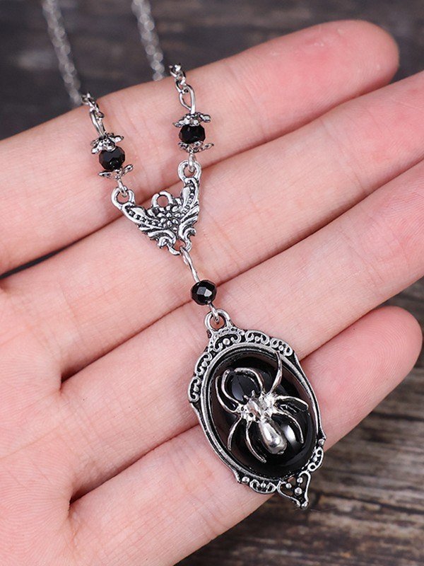 Halskette mit Anhänger aus schwarzem Spinnenstein