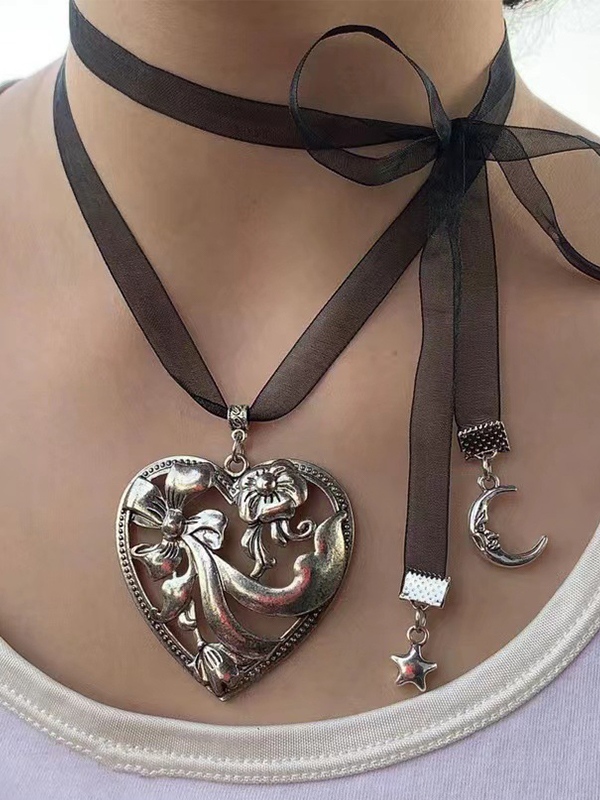 Halskette mit übertriebenem Ausschnitt und großem Herzanhänger