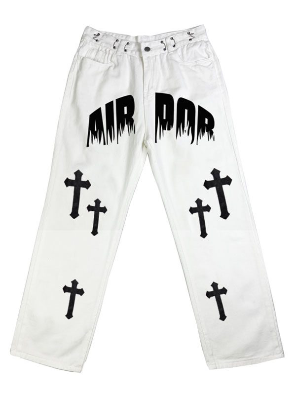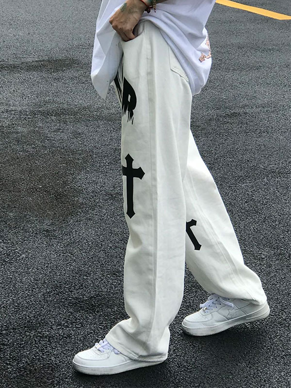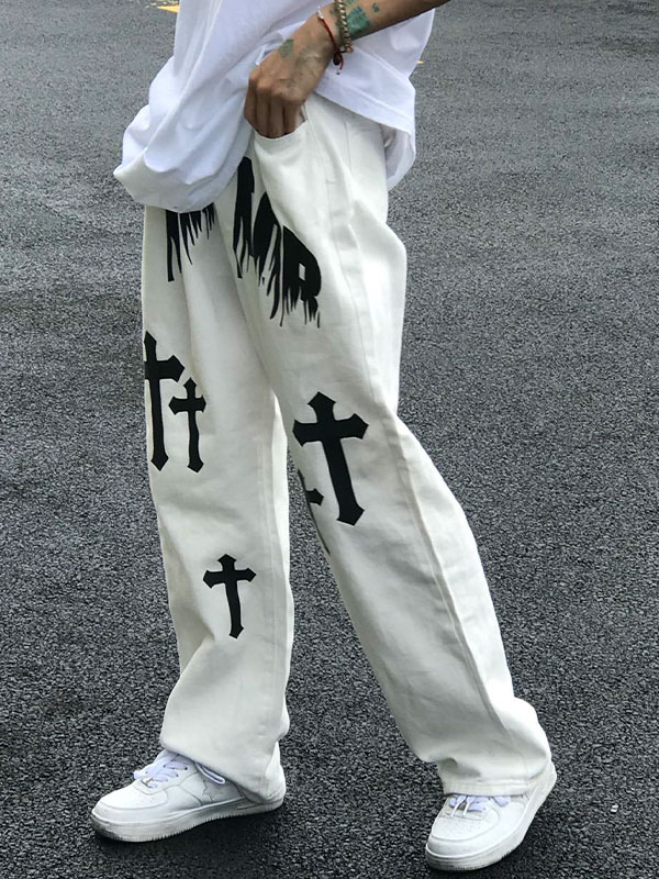 Herren Chrome Hearts Pattern Straight Leg Jeans