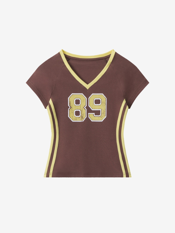 Kurzarm-T-Shirt mit V-Ausschnitt und Buchstaben-Print