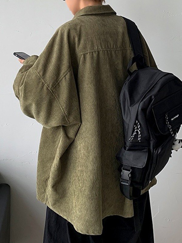 Ärmellänge: Langarm< br />Beschreibung: Diese langärmligen Hemden aus bequemem Cordstoff verfügen über eine große Tasche auf der Brust, die zu einer entspannten Silhouette geformt ist, mit überschnittenen Schultern und Knopfverschluss vorne.