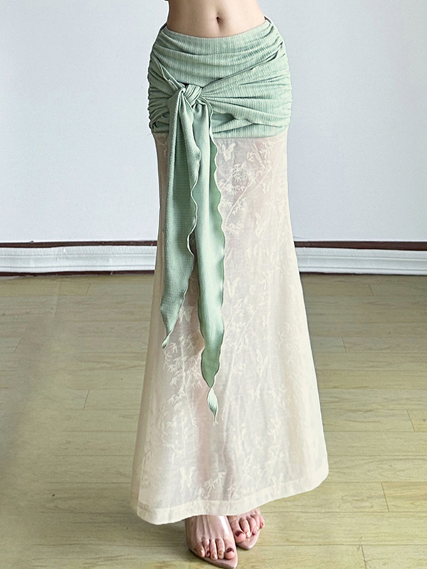 Maxirock aus Spitze mit Riemchen und Rüschen