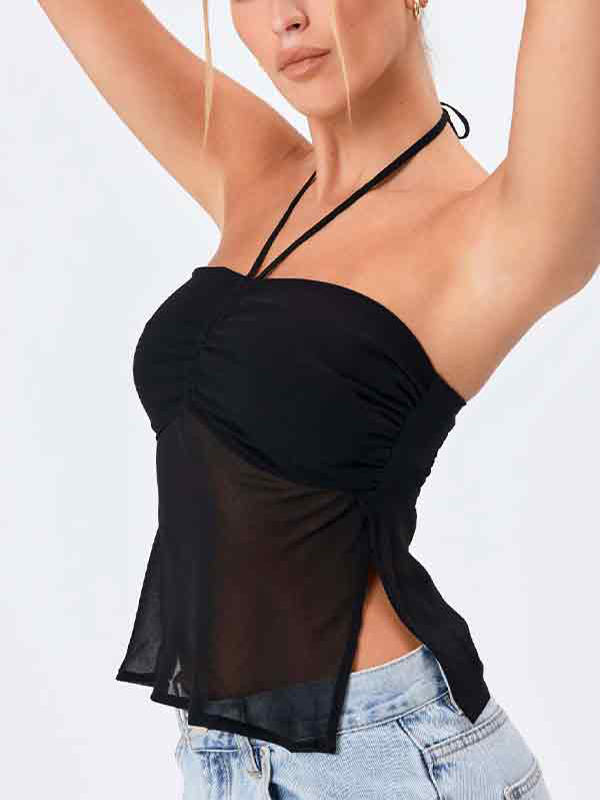 Neckholder-Weste mit Netzschlitz und Plissee-Design