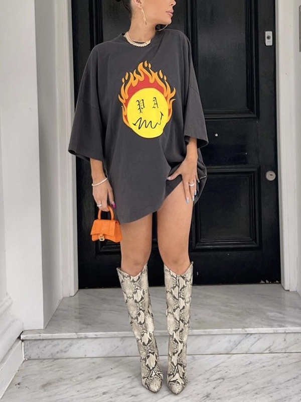 Übergroßes Kurzarm-T-Shirt mit Flammendruck und Rundhalsausschnitt