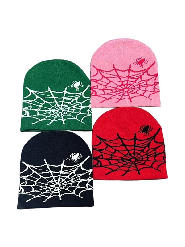 Warme Beanie-Mütze aus Spinnennetz-Jacquard