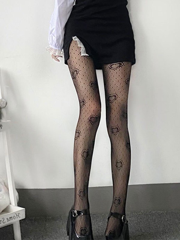 Schwarze Netzstrumpfhose mit Herzmuster