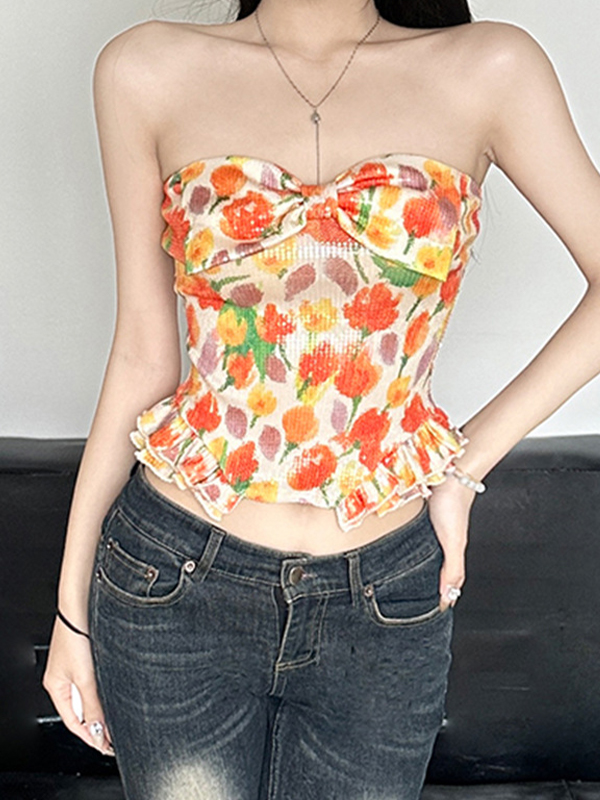 Bandeau-Top mit mädchenhaftem Tulpen-Print