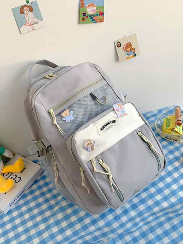 Lässiger Rucksack mit Netztaschen und Farbblockdesign