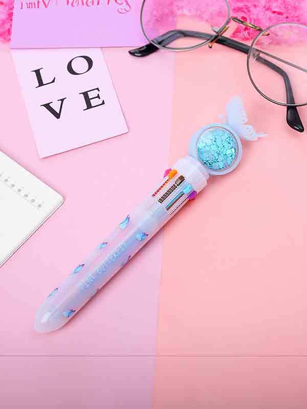 1 x Druckkugelschreiber mit Schmetterlings-Pailletten-Dekor