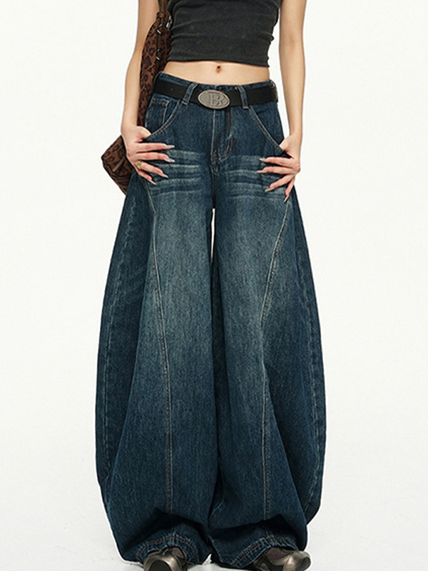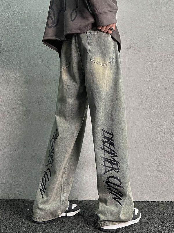 Vintage Gelb Schlamm Buchstaben Lose Gerade Jeans
