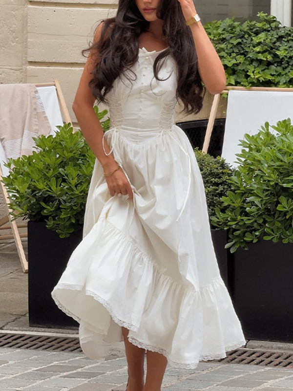 Rustikales Maxikleid mit Bindeband vorne