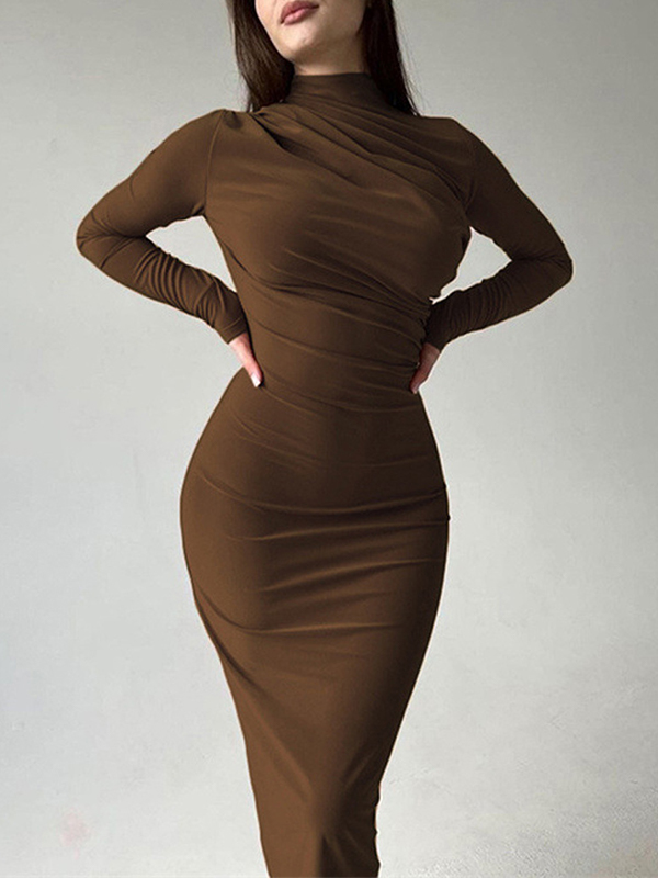 Schmal geschnittenes, einfarbiges, temperamentvolles, langes, hüftumwickeltes Kleid