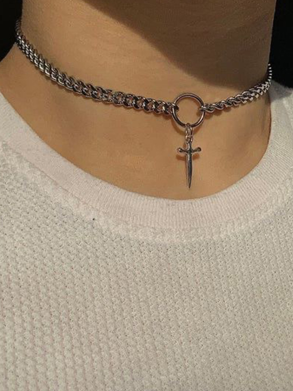 Herren-Halskette mit kubanischem Kettenring und Splice-Dolch-Anhänger