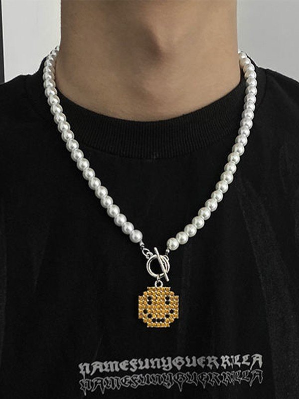 Herren Smile Anhänger Faux Pearl Toggle Halskette