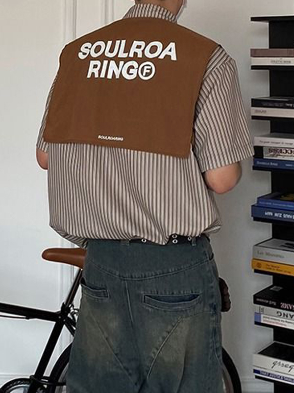 Gestreifte Spleißweste für Herren, gefälschte zweiteilige Kurzarmbluse