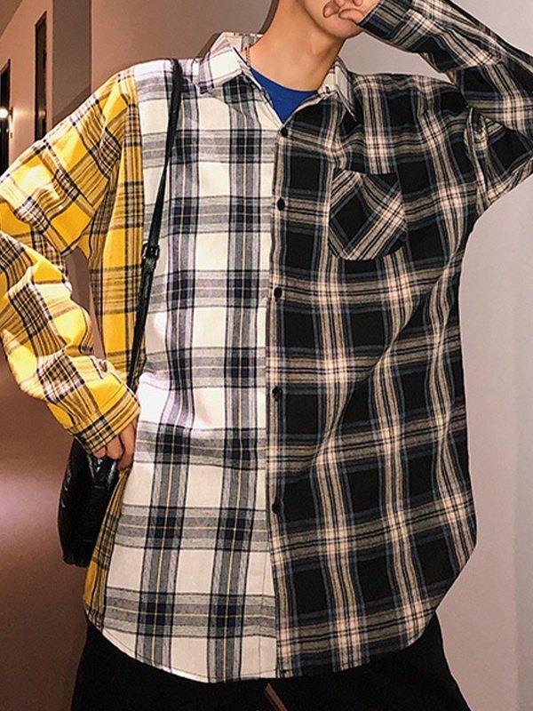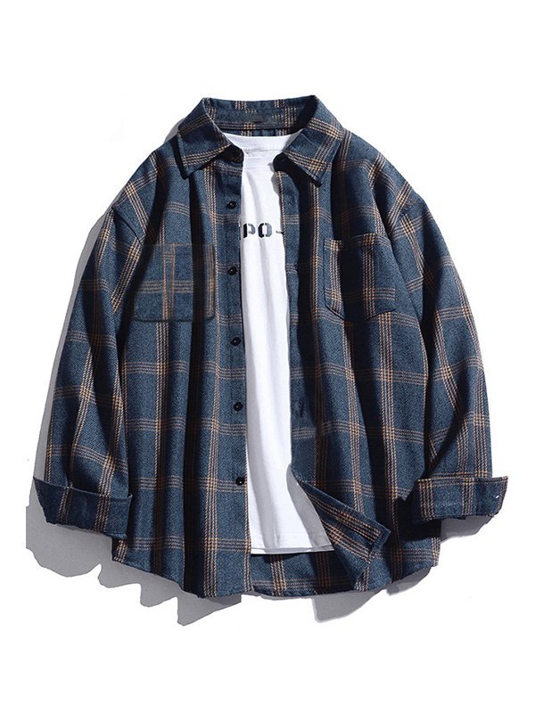 Kariertes Langarmhemd mit Knöpfen für Herren