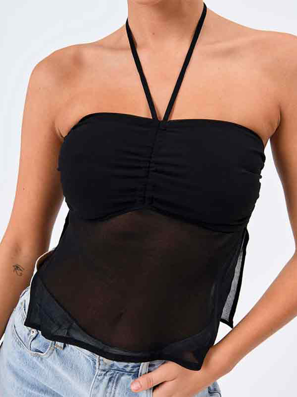 Neckholder-Weste mit Netzschlitz und Plissee-Design
