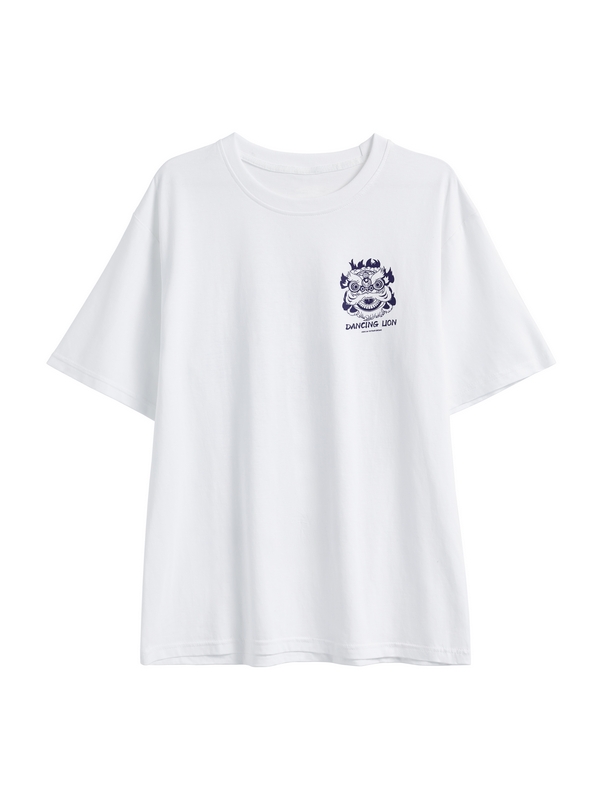 Kurzarm-T-Shirt mit tanzendem Löwen-Print für Herren