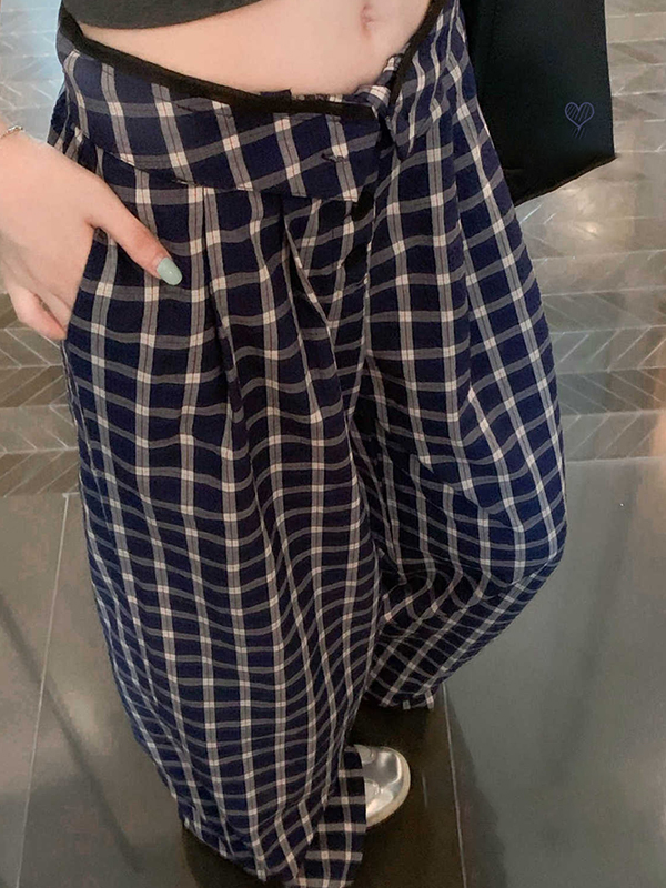Blau karierter Anzug im Yamamoto-Stil mit weit geschnittener Hose